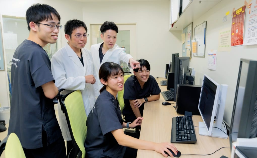 縦横の繋がりが強く困った症例も気兼ねなく相談できる環境で、同期や仲間と切磋琢磨しながら誇りを持って楽しく働いています。